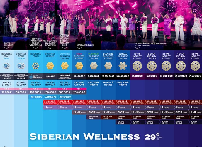Маркетинговый план Siberian Wellness разработан так, чтобы вознаграждать как личные продажи, так и развитие команды. Он построен на нескольких ключевых принципах: